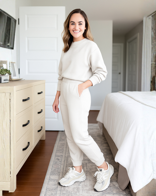 Conjunto de Tejido Suave en Tono Neutro para Mujer
