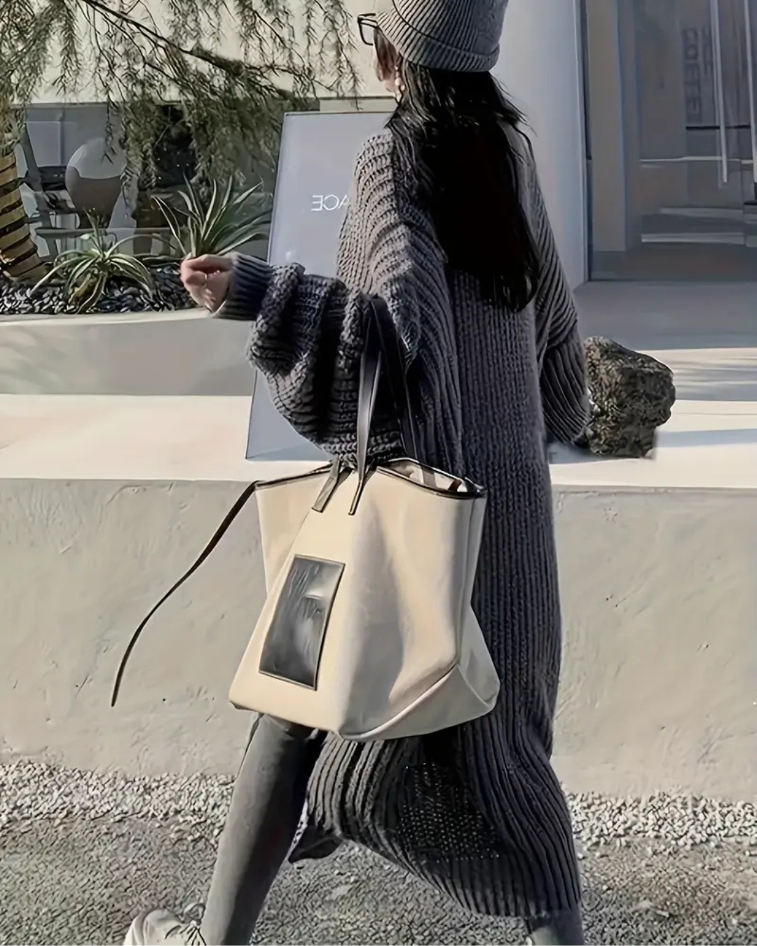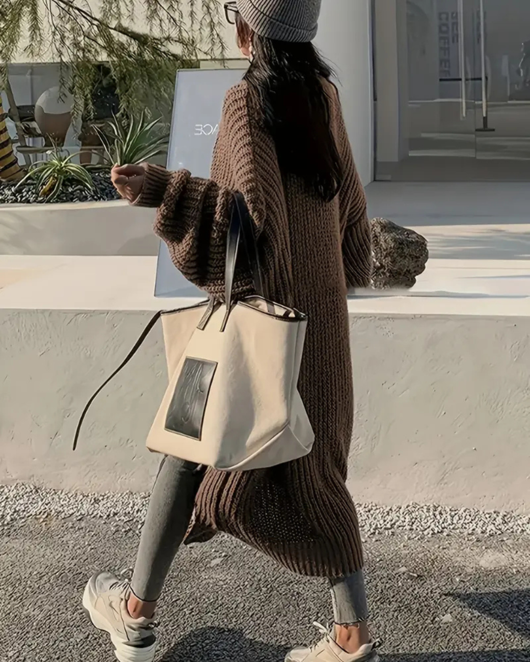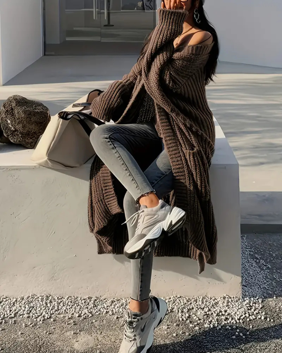 La sencillez de este suéter es su mayor fortaleza. El cuello largo y el diseño abierto le dan un aire de sofisticación, mientras que la silueta relajada lo mantiene casual. Es la prenda perfecta para quienes buscan un estilo que sea a la vez elegante y cómodo, ideal para cualquier evento.
