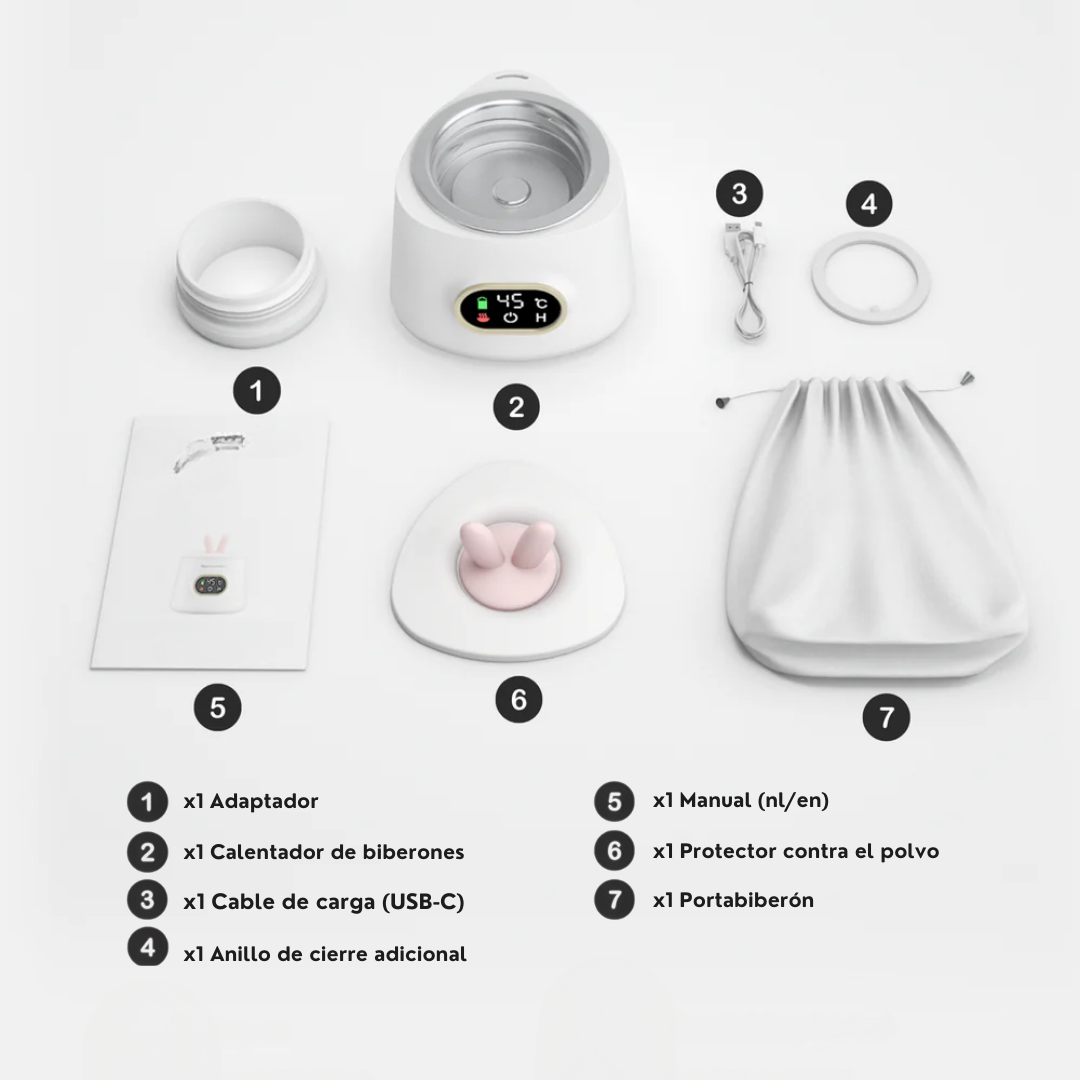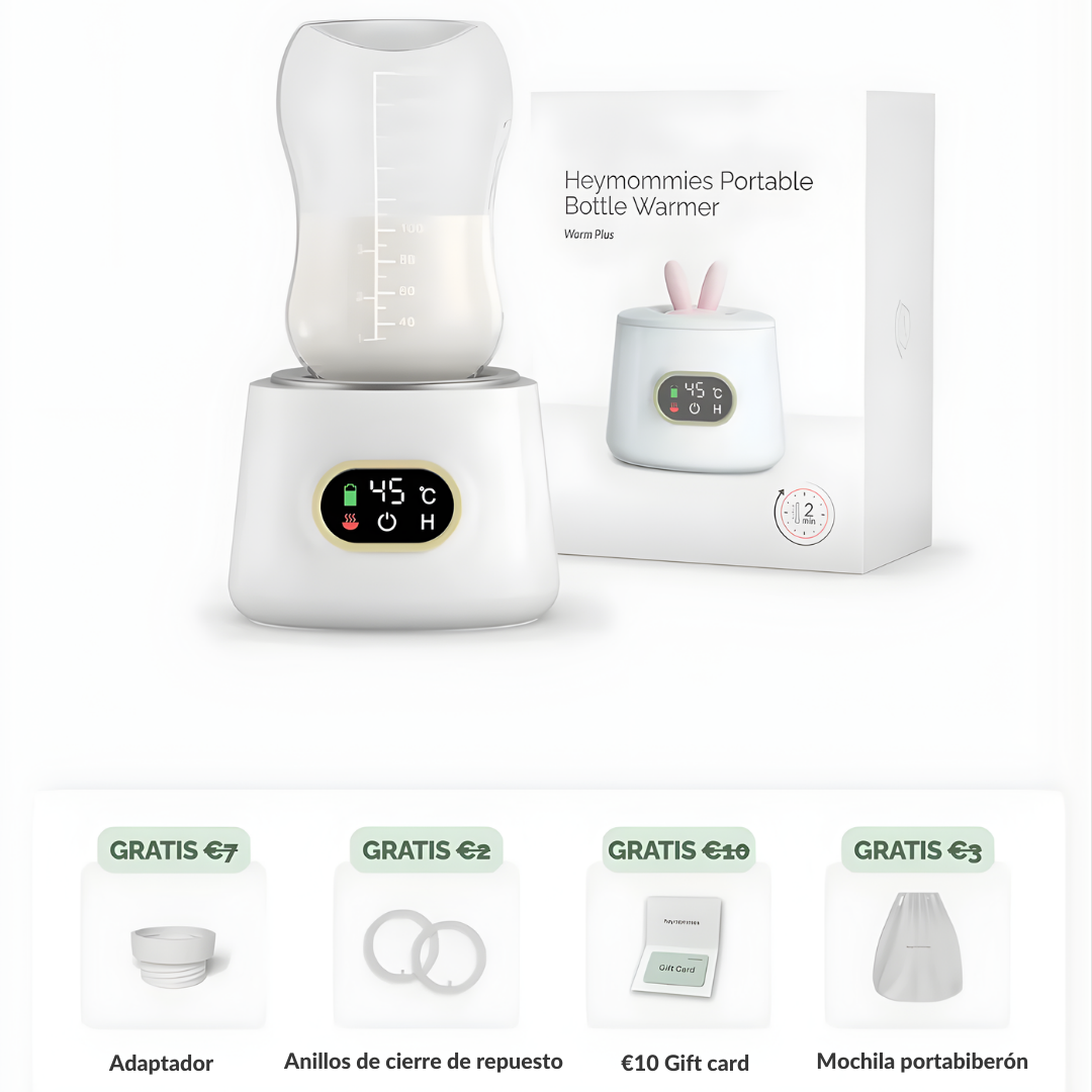 Diseñado para calentar sin necesidad de enchufes, microondas o termos. Es ideal para tomas nocturnas o para calentar el biberón en cualquier lugar, garantizando que siempre esté preparado sobre la marcha.