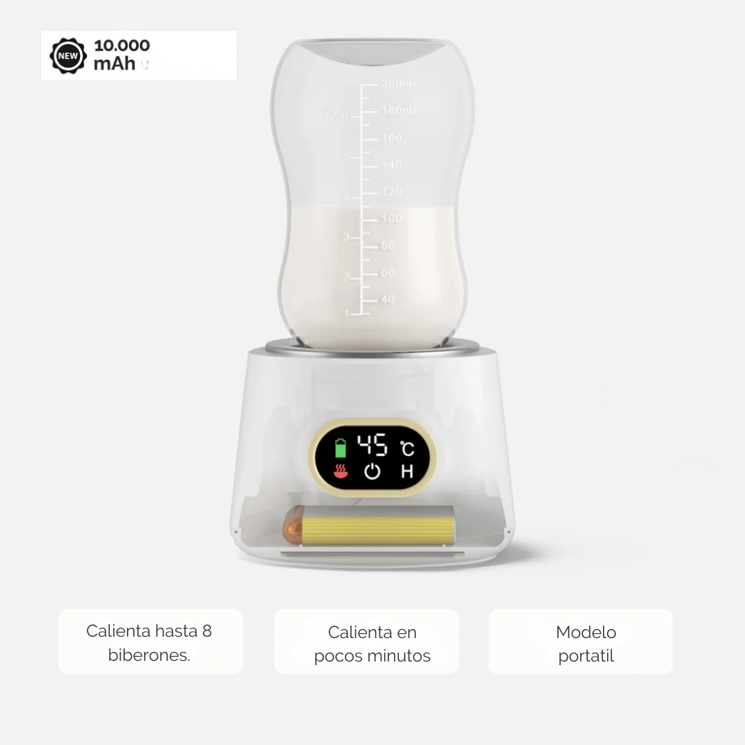 Equipado con una potente batería de 10.000 mAh que permite calentar hasta 8 biberones con una sola carga. También puede mantener un biberón caliente hasta por 10 horas, ofreciendo máxima fiabilidad.