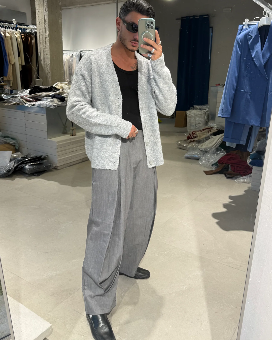 La combinación del tejido de tendencia y los botones pulidos eleva el cárdigan, permitiéndote un look sofisticado y casual a la vez. Es ideal para esos días en los que buscas un equilibrio entre lo formal y lo relajado.