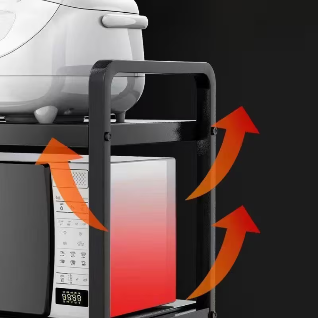 Fabricada con un marco de metal negro resistente, esta estantería es increíblemente duradera y estable. Soporta el peso de tus electrodomésticos y utensilios sin problema, lo que la convierte en una inversión inteligente para cualquier hogar. Es un estante de cocina funcional que te durará por mucho tiempo.