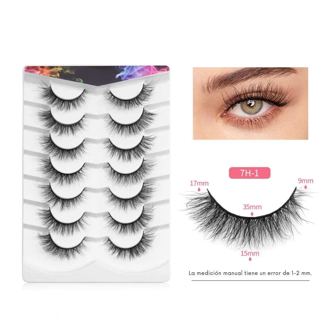 Este set incluye 7 parejas de pestañas postizas diseñadas para dar volumen, longitud y un efecto impactante desde el primer uso. Son ideales para transformar cualquier look en segundos, ya sea para diario o para ocasiones especiales.