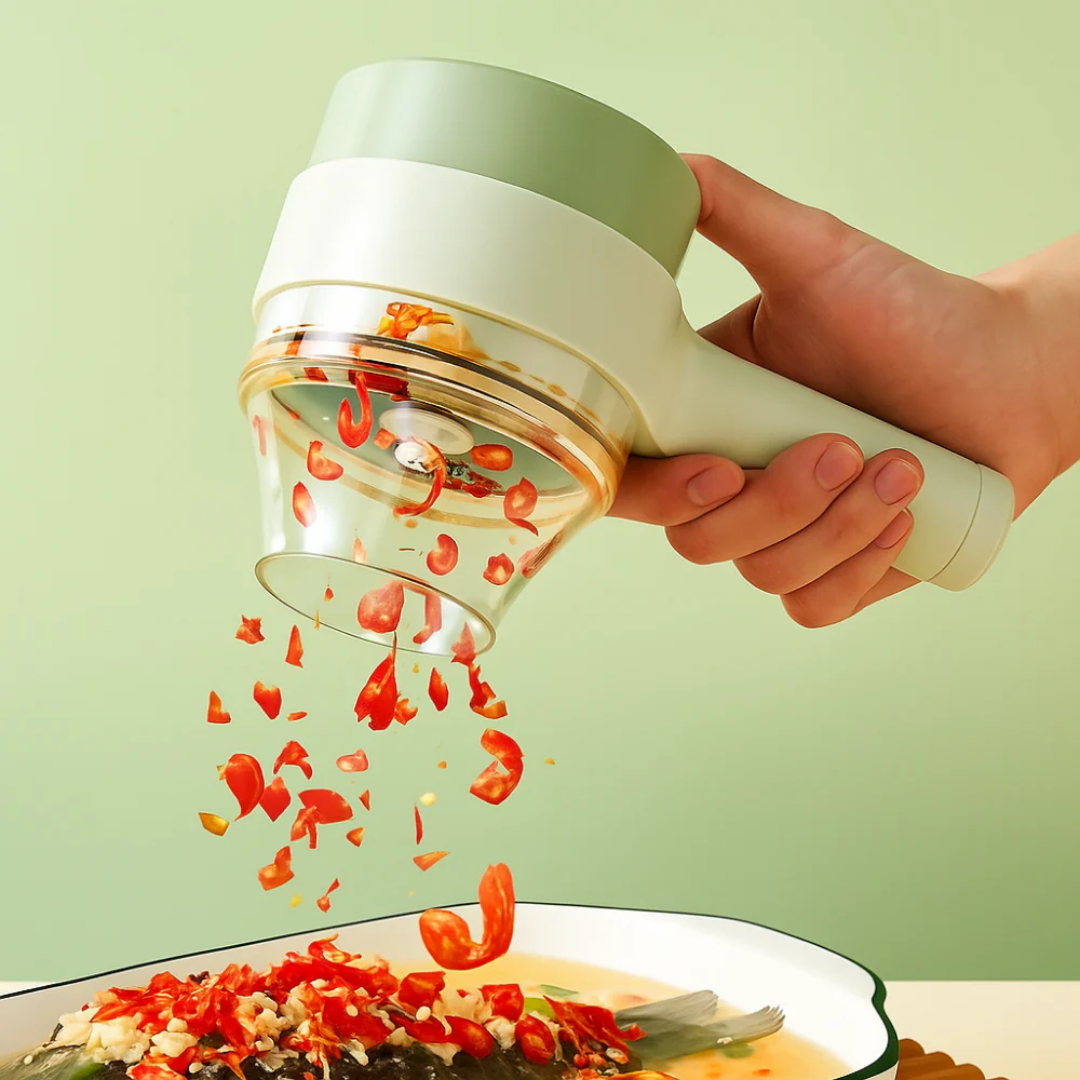 Un dispositivo compacto y potente diseñado para cortar, picar y mezclar alimentos rápidamente, logrando un ahorro de tiempo significativo en la preparación de comidas diarias. Su funcionamiento es ultra-sencillo: basta con pulsar un botón para procesar los alimentos.