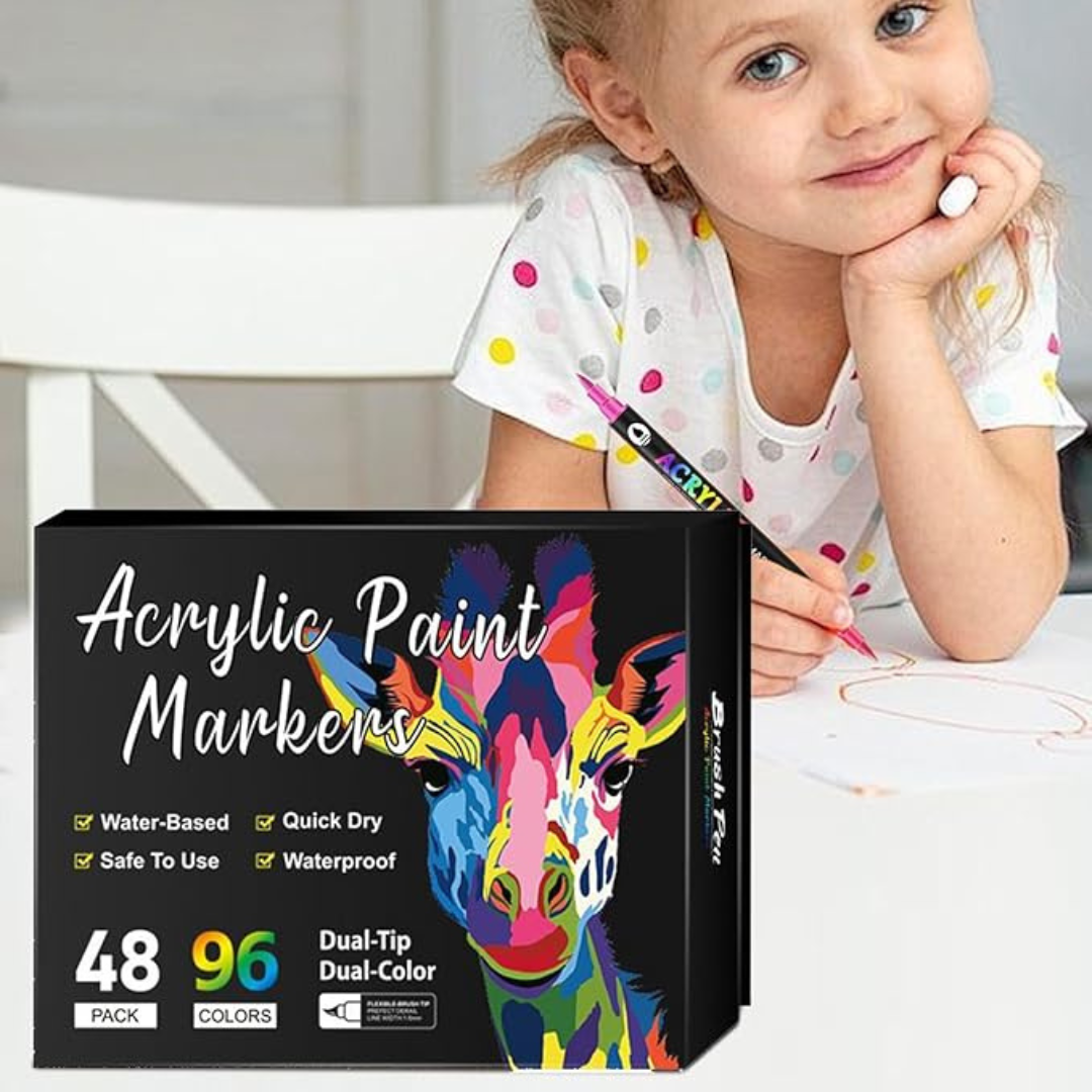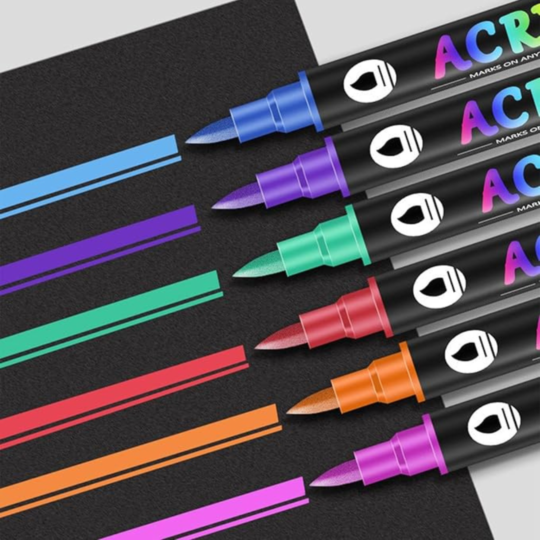 Estos rotuladores acrílicos son la solución perfecta para dar vida a tus ideas. Su diseño de doble punta te permite crear tanto líneas finas como rellenos amplios, ofreciéndote un control total sobre tus creaciones. Son ideales para el dibujo artístico, ya que te brindan la versatilidad de un pincel y la precisión de un marcador.