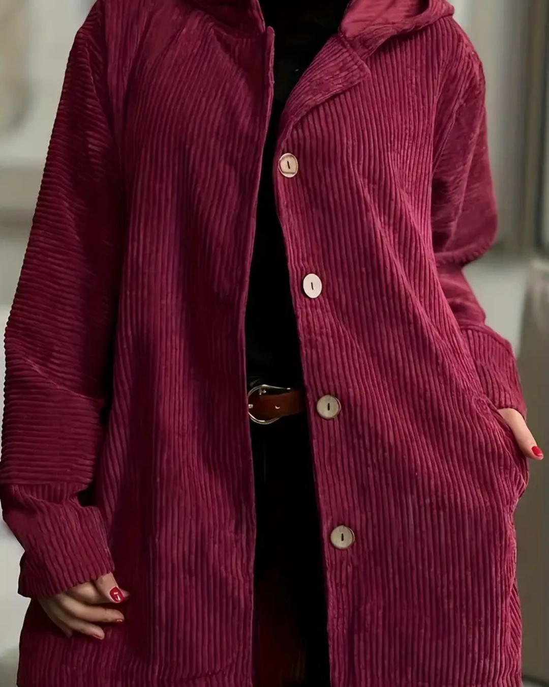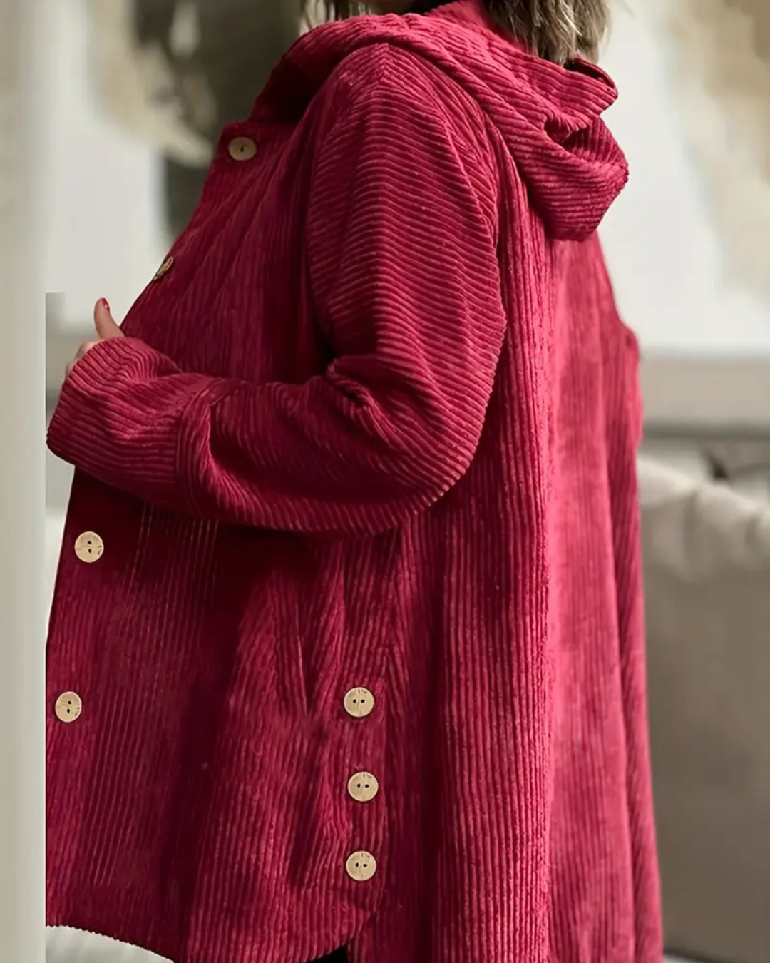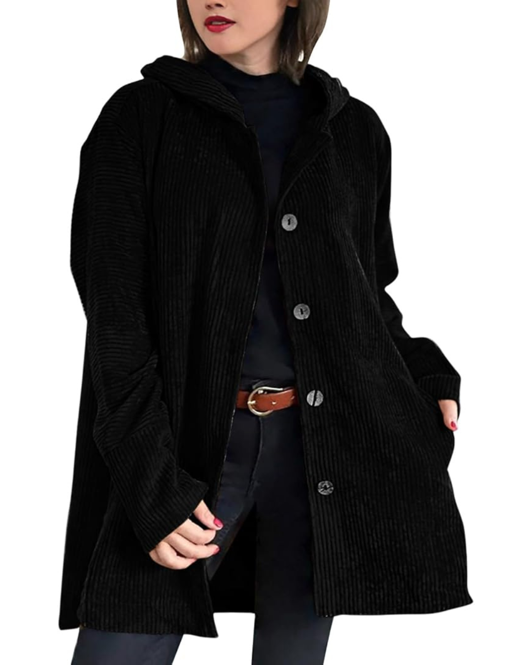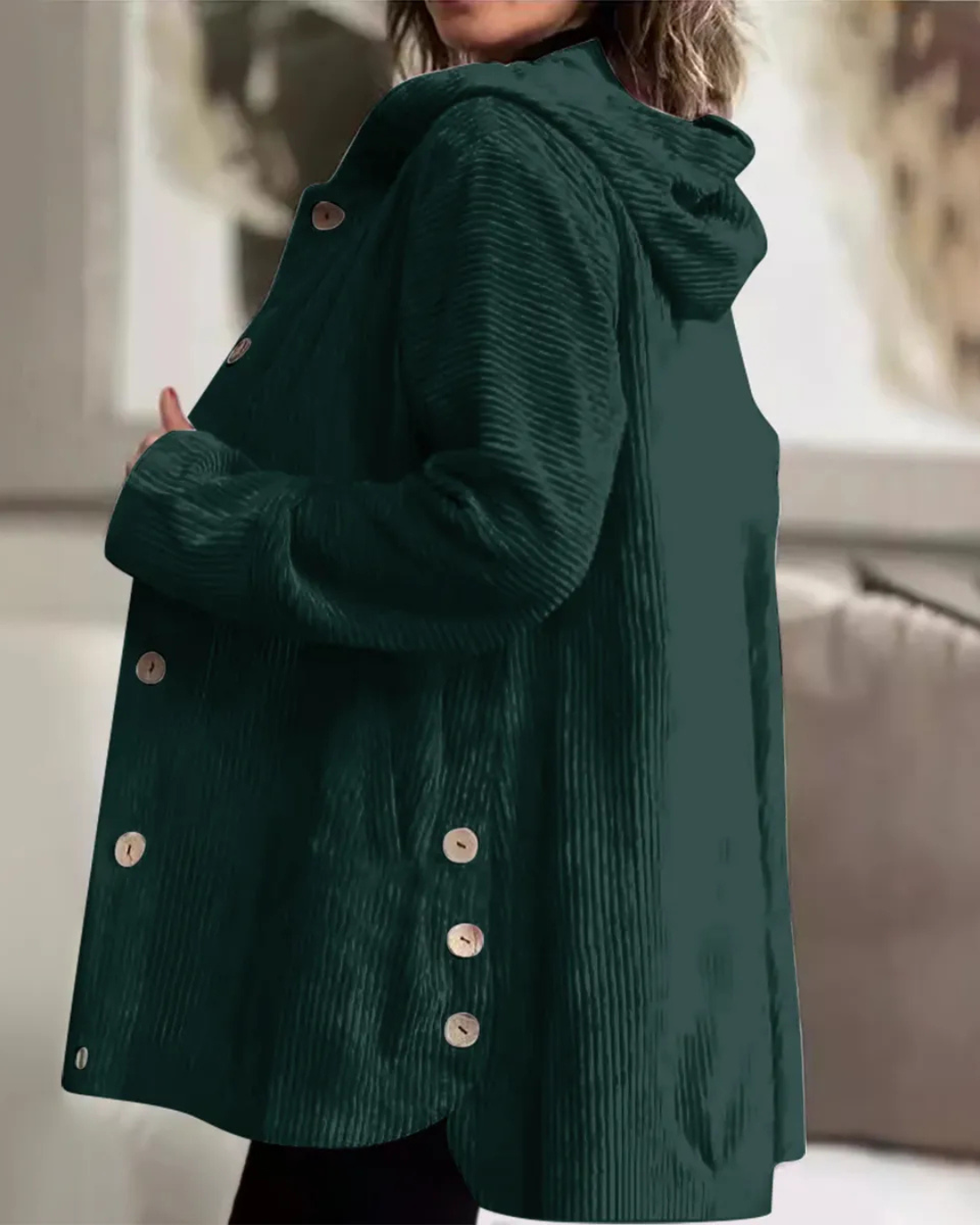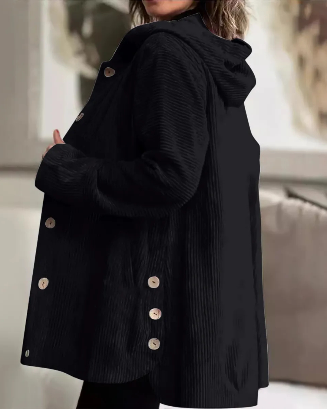 Suéter femenino con capucha ajustable y cierre de botones clásico