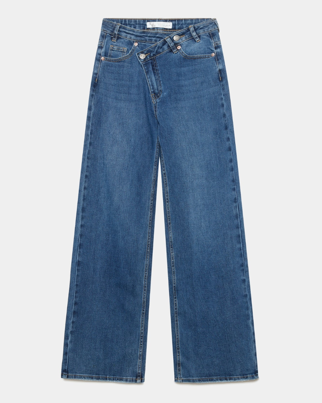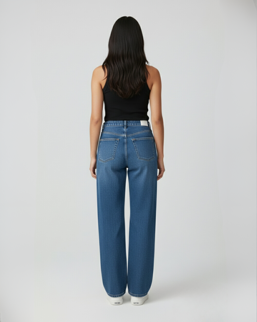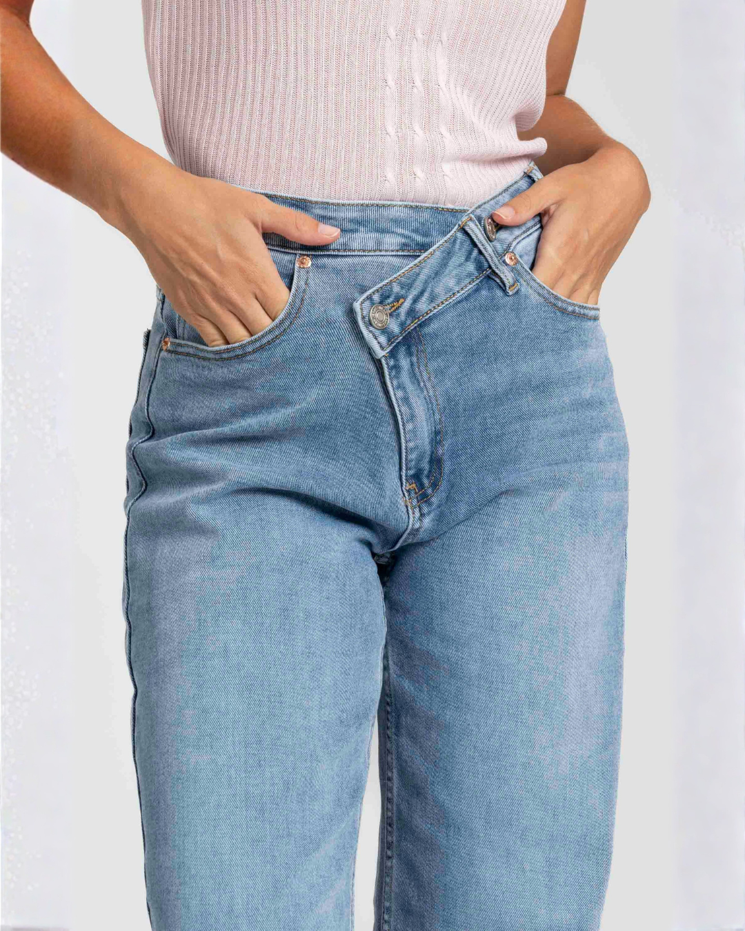 Además del tradicional cierre de cremallera y botón, incorpora un sutil detalle de botones asimétricos en el diseño. Este toque refinado no solo es funcional, sino que añade un elemento de estilo único que lo distingue de un pantalón vaquero básico.