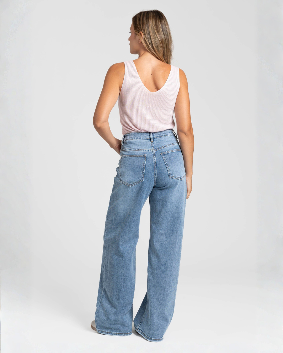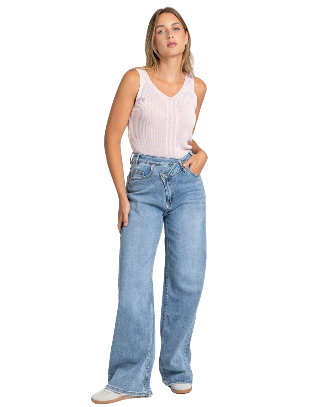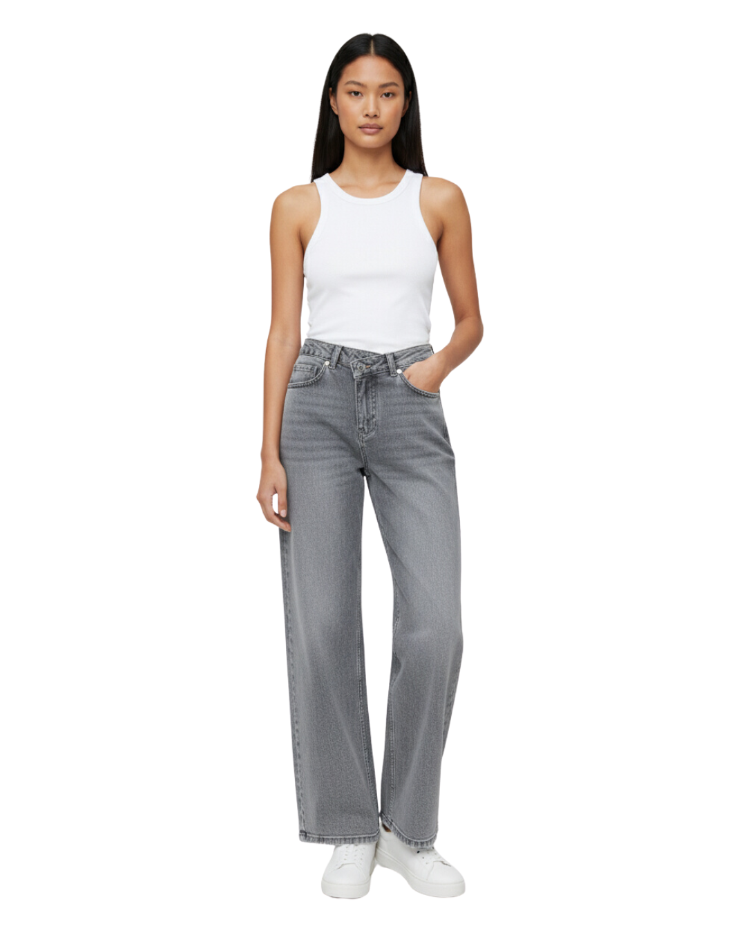 Además del tradicional cierre de cremallera y botón, incorpora un sutil detalle de botones asimétricos en el diseño. Este toque refinado no solo es funcional, sino que añade un elemento de estilo único que lo distingue de un pantalón vaquero básico.
